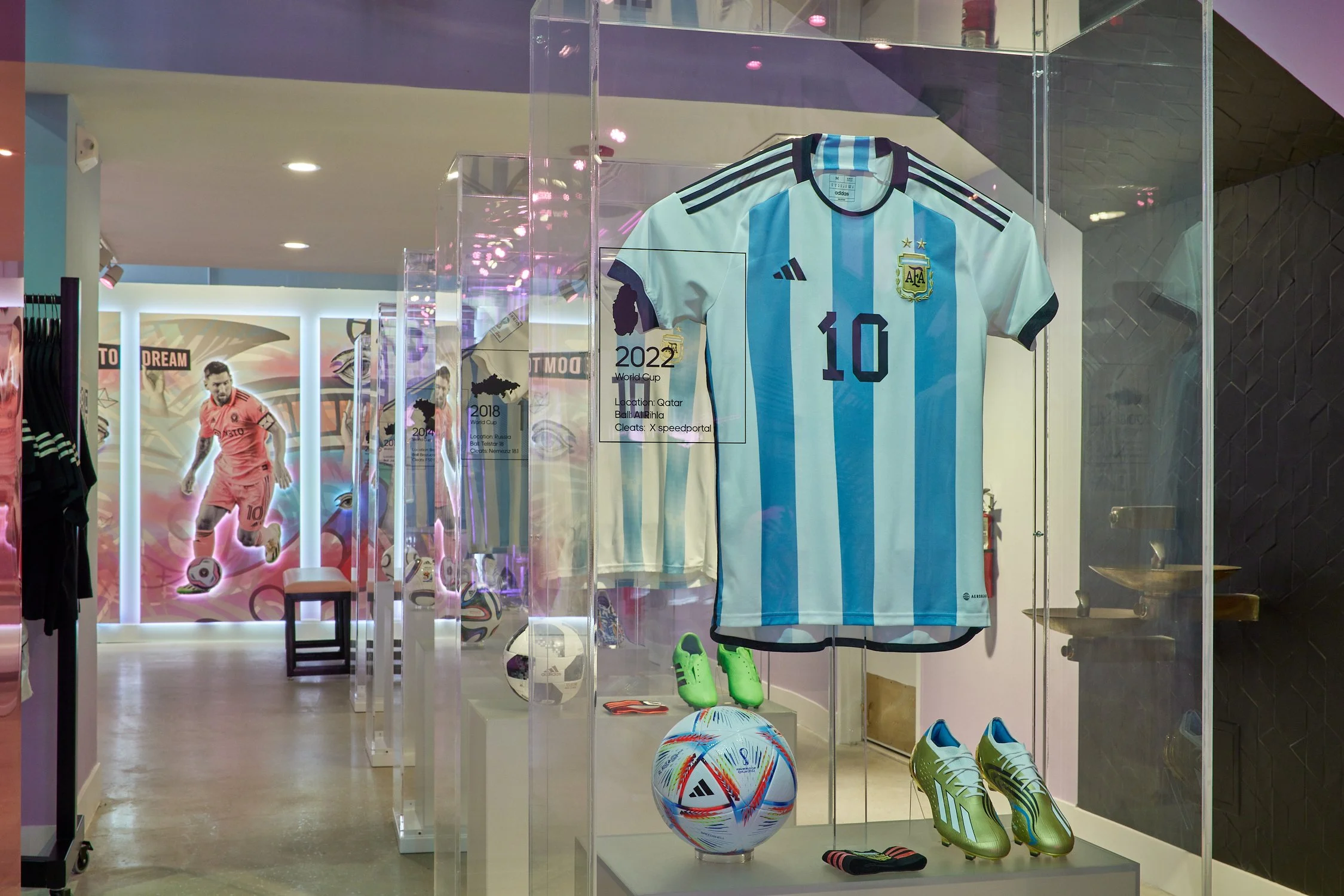 My role was to provide the customer experience strategy where my goal was to celebrate this iconic player coming to the United States by creating a museum-like experience, highlighting his career achievements, and tying it into the culture of Miami’s colorful and decorative art scene. This included creating the World Cup tunnel, celebrating his 5 World Cups playing for Argentina, the Ballon D’Or cleat wall, of all the years he won the World’s Best Player, and tapping into one of the most famous graffiti artists in Rigo Leon, creating a mural wall dedicated to Messi in the store.